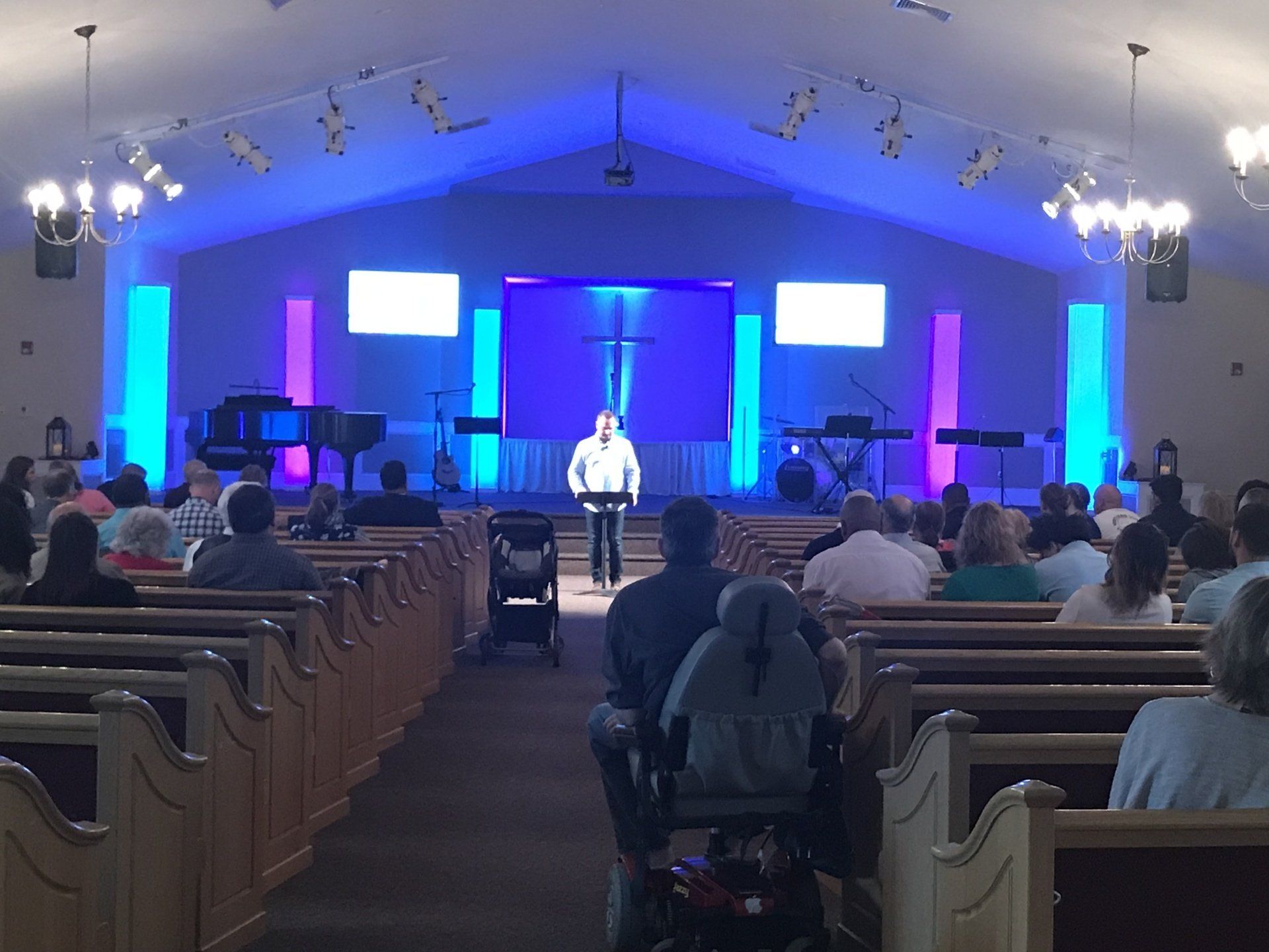 Dress Casual. Come as you are. We meet on Sundays and have Anchor Kids for grades K-6.