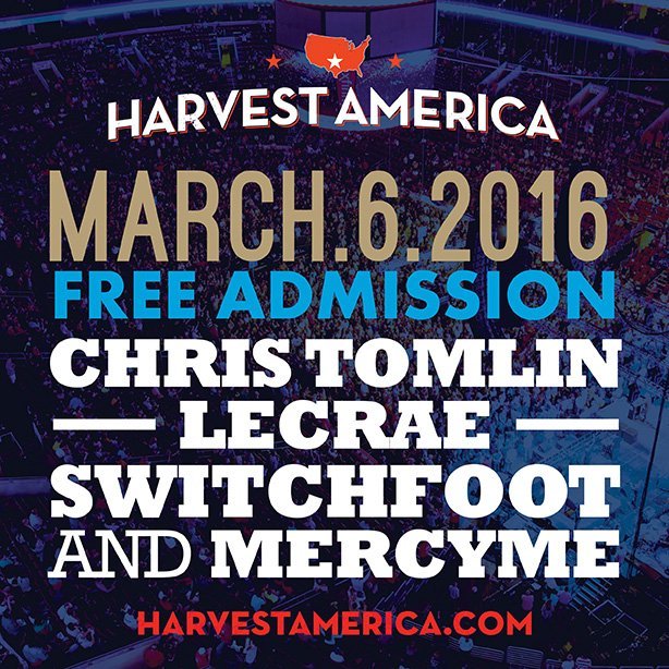 Featuring music from Chris Tomlin, Lecrae, Switchfoot, and MercyMe, and a clear gospel message by Greg Laurie, the goal of Harvest America is to impact a nation desperately in need of hope.